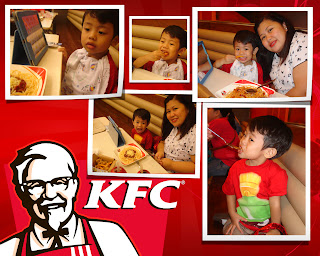 Hubby and I got in on the fun too... Adam was so proud of his work that he put them all on display on our refrigerator door. After that, he had nothing else to talk about but coloring the rest of the day. Even during Sunday mass, he kept saying that he was going to show Mamu & Dada (my parents, his grandparents) all of his work and that we should print more coloring pages so he could paint more. I asked him to be quiet at least during mass and we will do so... He was very good and quiet until the mass was finished that we rewarded him to a trip to the mall and his favorite arcade. Afterwards, we had early dinner at KFC.